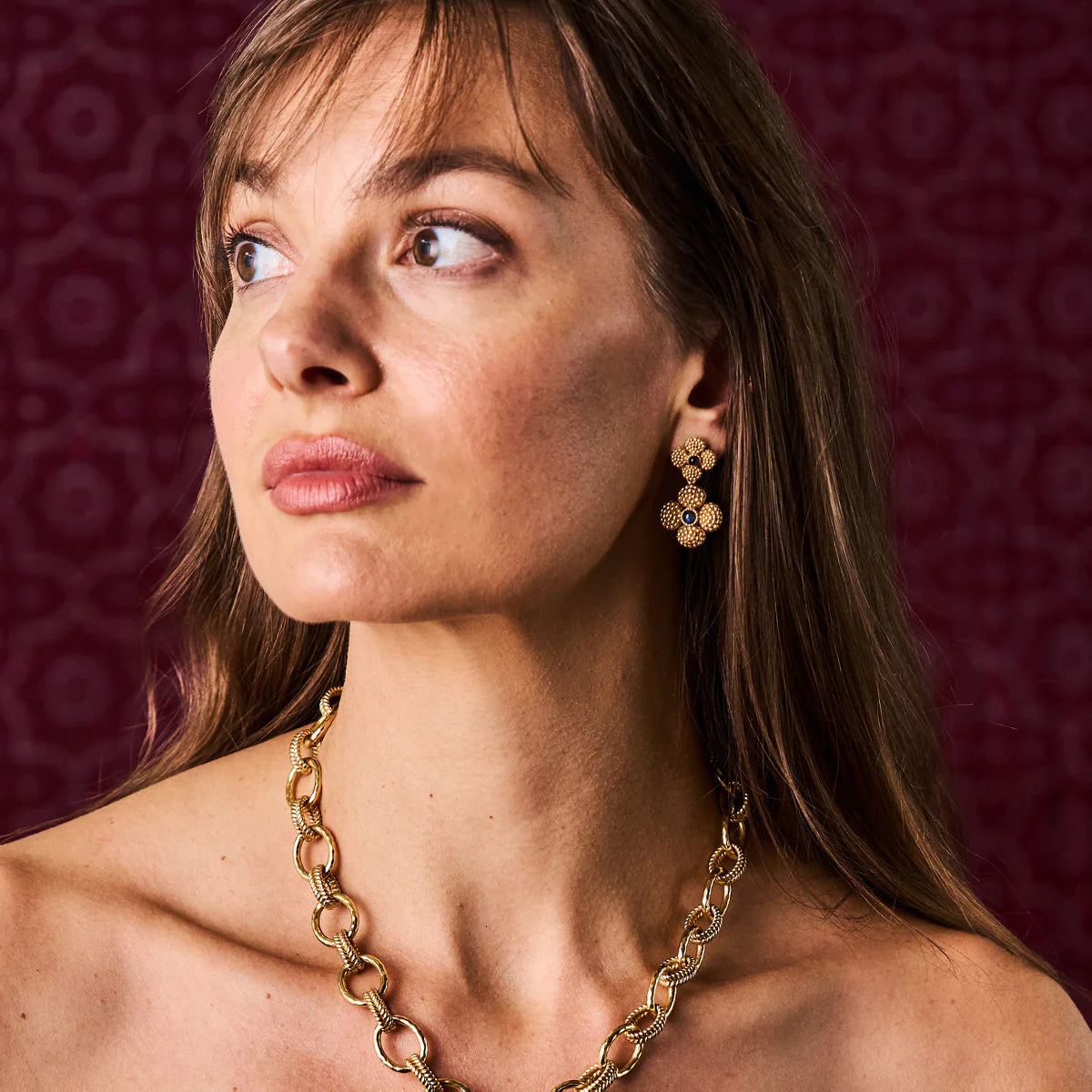 Our signature golden berries are clustered together in 4-leaf clovers so you can carry a token of luck everywhere you go. With luminous blue labradorite gemstone centers, this pair of earrings can be easily converted to just the studs by removing the bottom clover—making this set a gorgeous and gilded two-for-one. Lucky you!