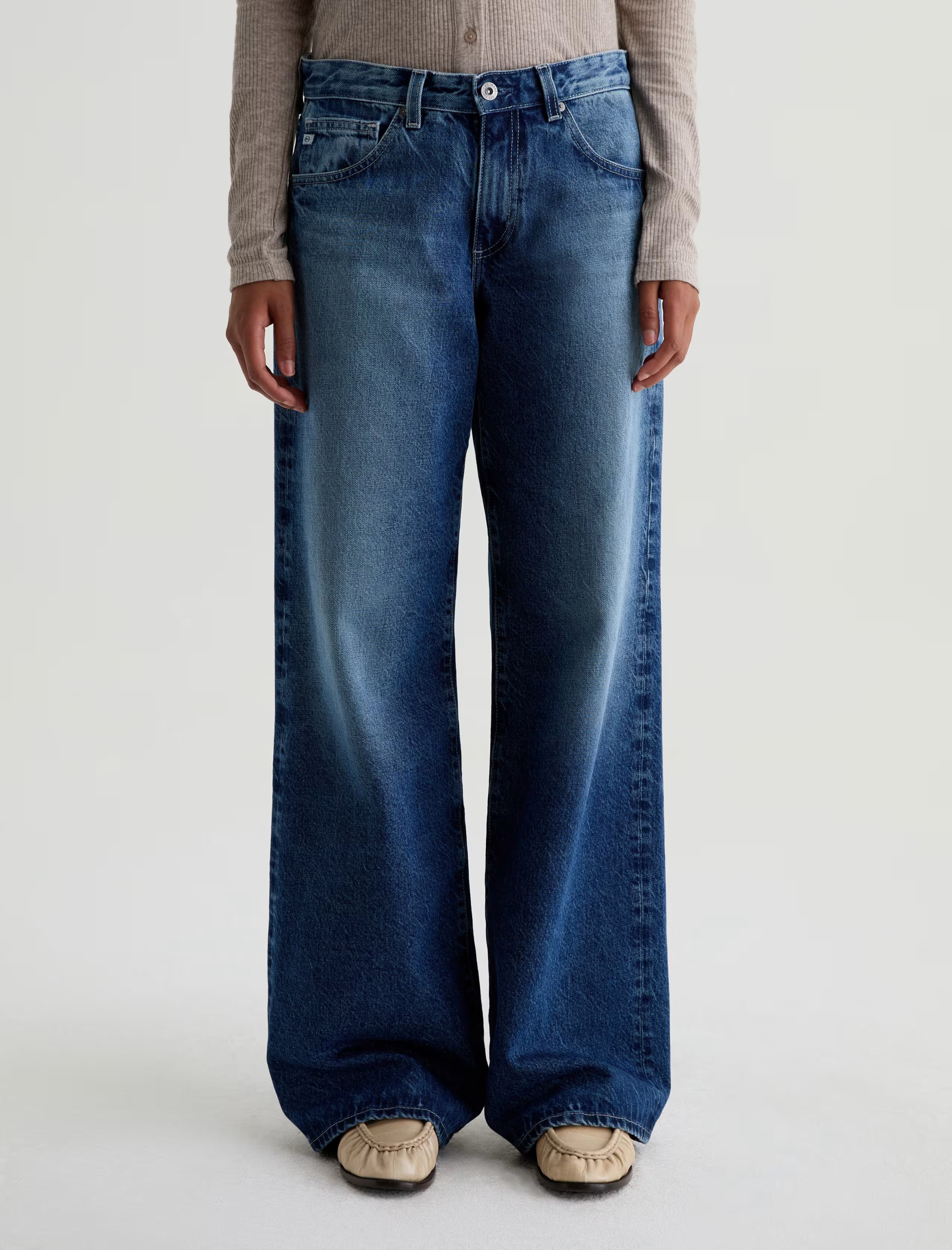 Adria is crafted in Sioux Rigid Denim from the renowned Candiani Mill in Italy. This jean is adored for its low-rise waist that hangs on the hip and a loose wide leg that puddles at the hem. Designed with highs and lows, whiskering, and fading in our medium dark blue wash, Ojai.