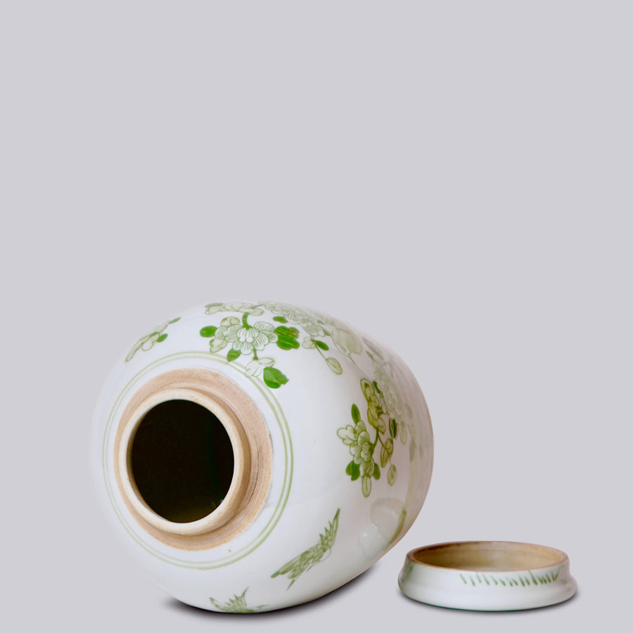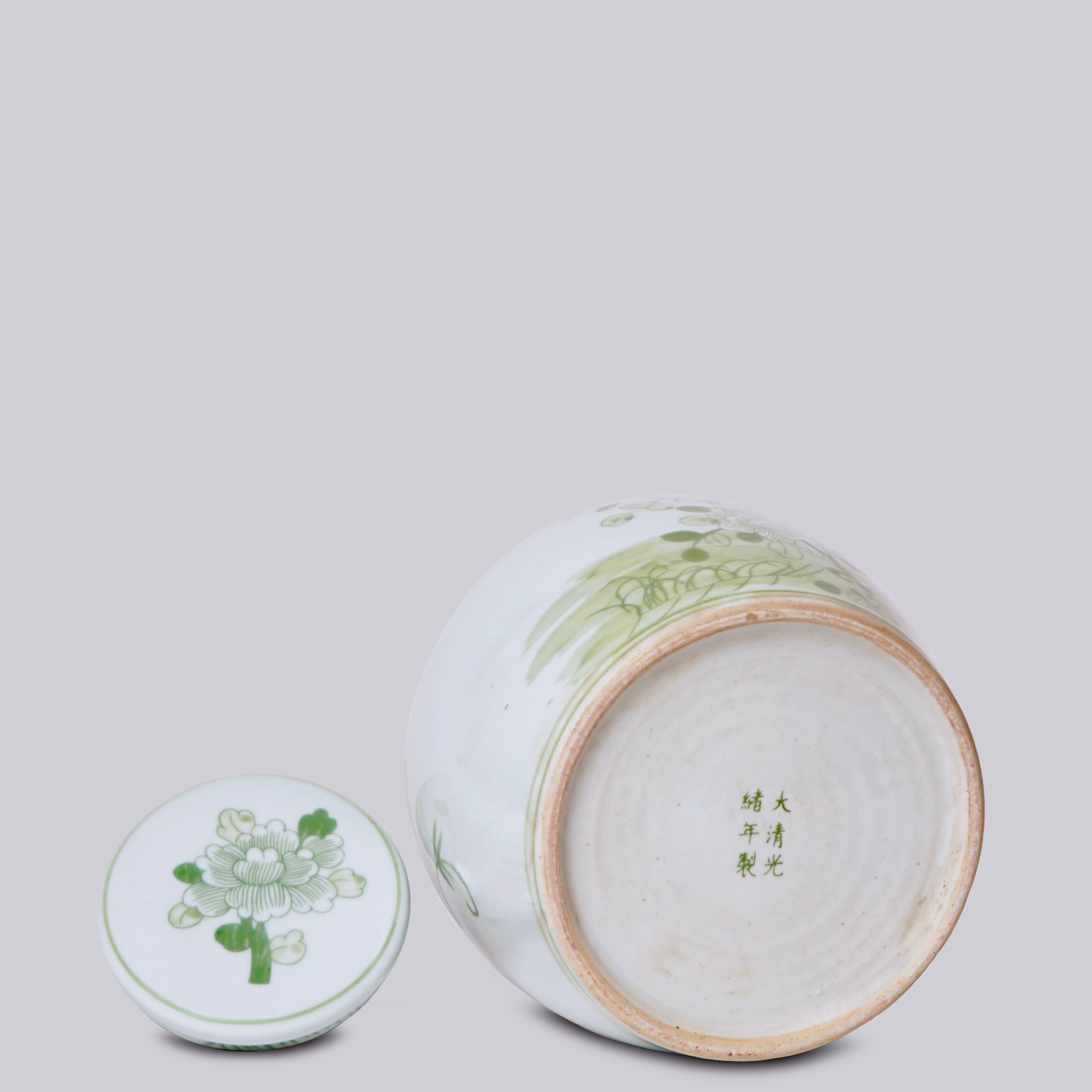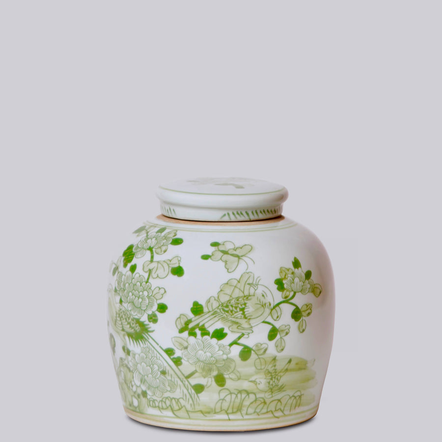 From the antiques markets of Jingdezhen, a town long distinguished by imperial patronage, this piece is glazed in a lovely spring green with a sweet bird and flower design and measures 9” x 9”
