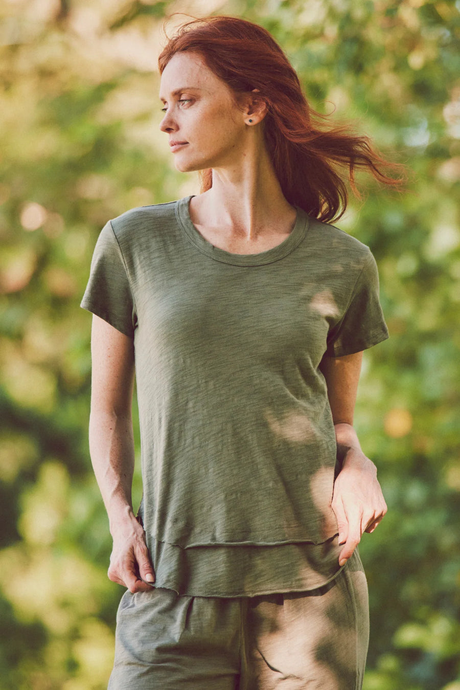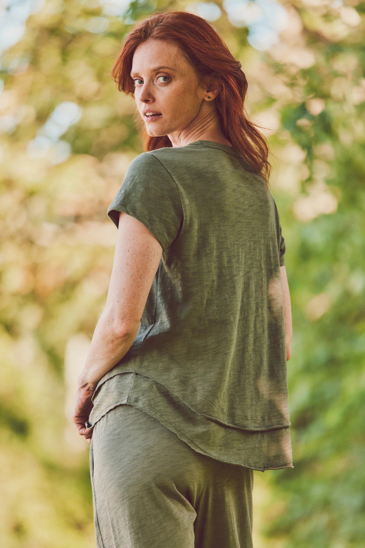This tee is a breakout star. We designed it with a slightly elongated a-line cut and double layer curved hem, mostly because it was cute, but it turned out we unexpectedly created the most flattering tee for every body type that our customers have ever experienced. The reviews speak for themselves. Our signature Peruvian Cotton Slub is breathable, perfectly opaque (even in white) and gets softer with every wash.