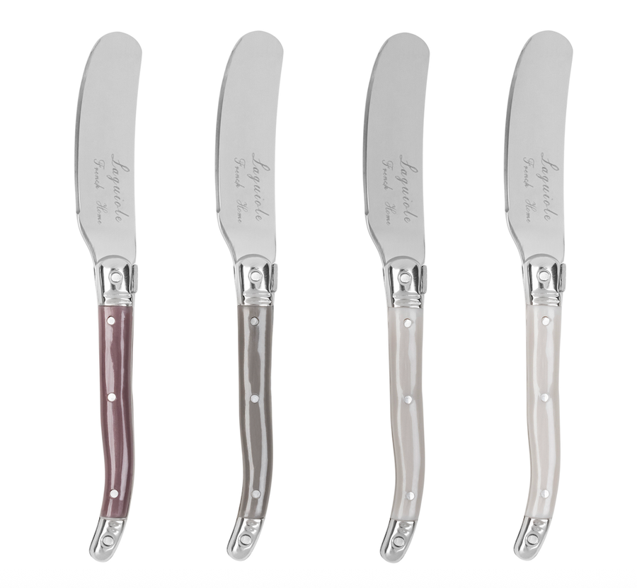 Entertain elegantly with this set of four fabulous stainless-steel Laguiole spreaders featuring handles in rich warm hues of cinnamon and spice. Ideal for spreading creamy butter on a baguette, foie gras on toast points, brie on crackers, cream cheese on...