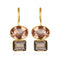 Cheerful pops of color in an eye-catching design!  A stunning combination of emerald cut smoky quartz with brilliantly faceted oval cut champagne quartz.  Hand crafted with bezel set stones and French ear wires, 14k gold plated 1.5" total drop and 5/8" in width.